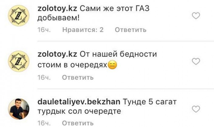 "Приходится объезжать все заправки в поисках сжиженного газа. Он как будто испарился. Я вчера простоял в очереди с семи вечера до двух ночи. Сегодня опять стою в очереди уже два часа и неизвестно, успею заправиться или нет. Некоторые водители засыпают за рулем в ожидании. Все нервничают, а что делать - газа нет, приходится стоять километровые очереди. Когда уже власти решат проблему с голубым топливом? Невыносимо, это уже край нашего терпения", - пожаловался водитель по имени Галымжан.
