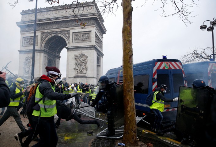 Первые столкновения демонстрантов с полицией произошли у Триумфальной арки (Этуаль). Протестующие попытались захватить контрольно-пропускной пункт на входе в зону акции протеста. Правоохранительные органы применили слезоточивый газ.