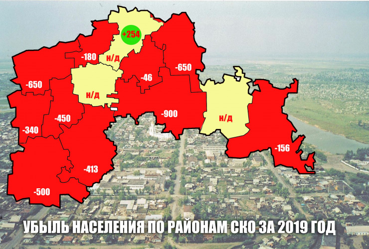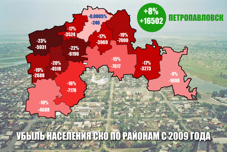"Есть все основания полагать, что в Кызылжарском районе, расположенном вблизи областного центра, положительные показатели, но точных цифр у нас пока нет. Единственным однозначно зеленым пятном на карте стал город Петропавловск, население которого увеличивается последние 14 лет", - говорится в исследовании.