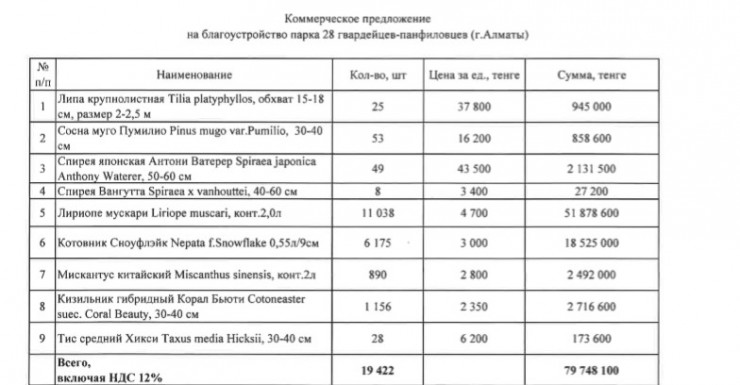 Еще в январе 2019 года Управление комфортной городской среды объявило о проведении тендера. Тогда предполагалось выделить 1,05 миллиарда тенге на благоустройство Парка имени 28 гвардейцев-панфиловцев. Больше года спустя закупка состоялась.