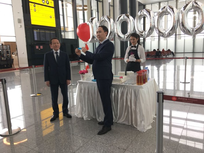 "Дата выпала случайно, но мы и видели, что число пассажиров идет к этой отметке. Конечно, хотели, чтобы миллионный оказался из числа пассажиров наших отечественных авиалиний, рады, что это оказался борт Air Astana, но ожидали, что он мог оказаться и не казахстанцем", - рассказал генеральный директор АО "Международный аэропорт Астана" Радильбек Адимолда.