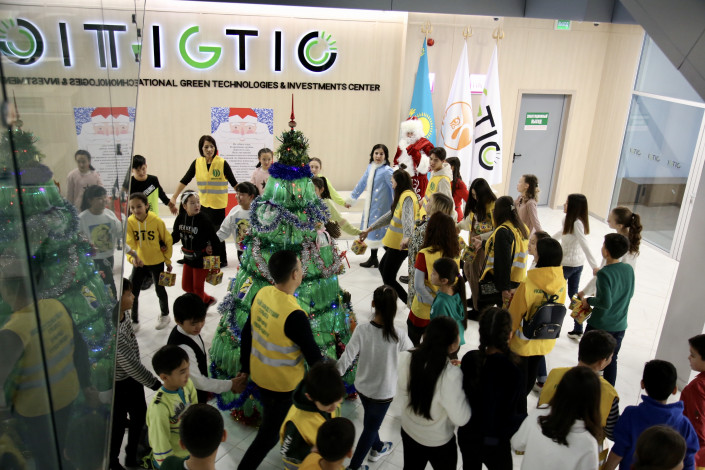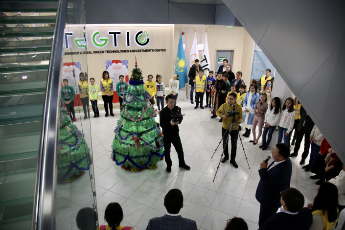 "Мне хочется поблагодарить всех  участников этого проекта и поздравить с наступающим праздником. Эта красивая эко-елка сделана руками детей. Вы можете видеть на ней игрушки, которые также были сконструированы из вторичных материалов. Мы не хотим использовать живые елки. Мы, как экологи, выступаем за то, чтобы в стране меньше вырубалось деревьев, а больше было посадок. И если по стране будут появляться такие вот эко-елки, то это здорово отразится на нашей с вами природе", - заявил вице-министр экологии Примкулов.