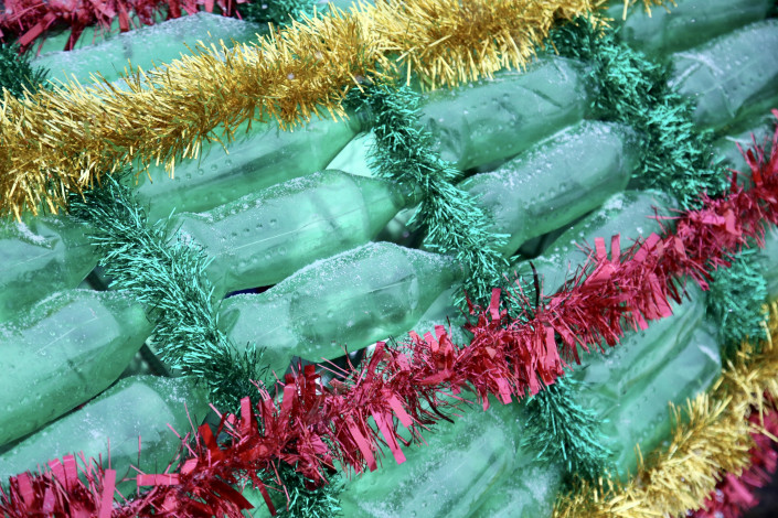 Бутылки были специально вымыты, очищены, а после прикреплены к металлическому каркасу, который, кстати, также был сделан из выброшенного металлолома. Украсили эко-елку оригинальными игрушками, сделанными из вторсырья школьниками. Высота эко-елки составила более двух метров. Таким образом авторы идеи хотят привлечь внимание к проблеме вырубки живых елей, а также к переработке использованных пластиковых бутылок.