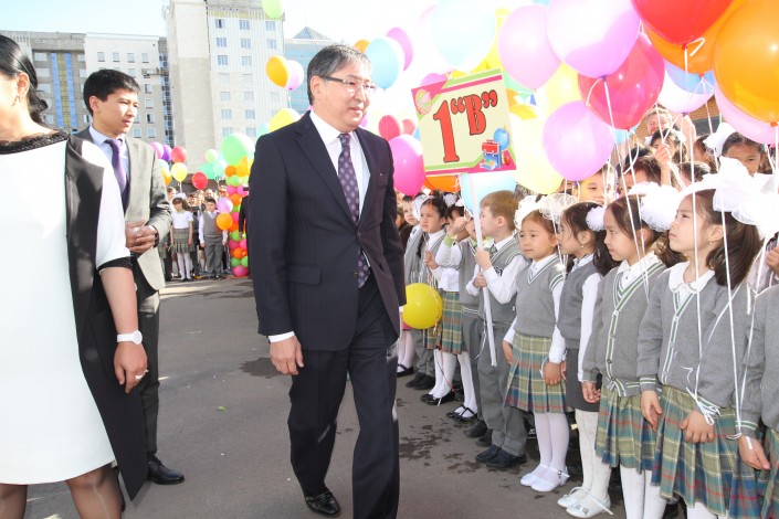 На торжественной линейке в столичной гимназии №75 глава МОН обратился, в первую очередь, к выпускникам школ. "Вы выходите в новый мир, мир знаний. Это будет совсем другой мир - я думаю, на первом курсе университета вы это почувствуете. Все, что я вам хочу пожелать, - вы закончили прекрасную школу, получили прекрасные знания. Желаю вам успехов на ЕНТ, желаю поступить в лучшие вузы страны, за рубежом. Желаю вам получить прекрасные профессии, очень интересные. Чтобы вы были у нас великими учеными, великими писателями, великими инженерами", - сказал Сагадиев.