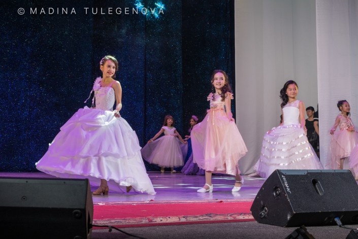 В течение вечера девочки дефилировали перед зрителями в нарядных платьях и casual-костюмах, а также показывали творческие номера.