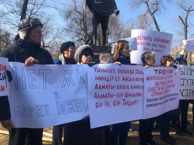 "То, что происходит в Алматы, - это не просто точечное строительство, из-за которого нарушается поток воздуха. Это нарушение наших конституционных прав. В частности, мы уже много лет не можем добиться ответа на вопрос: "Кто снес детский сад № 45?" Нас не слышат! В целевом назначении (на месте детского сада. - Примечание автора) числилось строительство многоэтажного жилого дома с детским садом. По факту строят четыре жилых дома, а детский сад заменили на центр для детей", - рассказал один из митингующих.