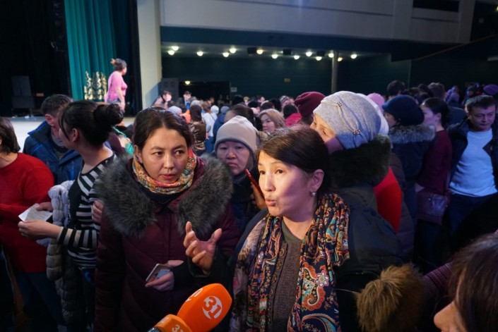 В концертном зале "Астана" (бывший Конгресс-холл) проходит встреча представителей акимата с многодетными родителями. Женщины просят сделать арендное жилье доступным, помочь улучшить их жилищные условия и увеличить пособия.