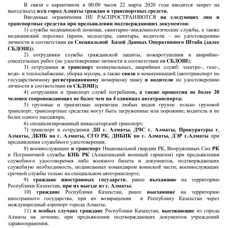 Кто может въезжать и покидать Алматы во время карантина: полный список