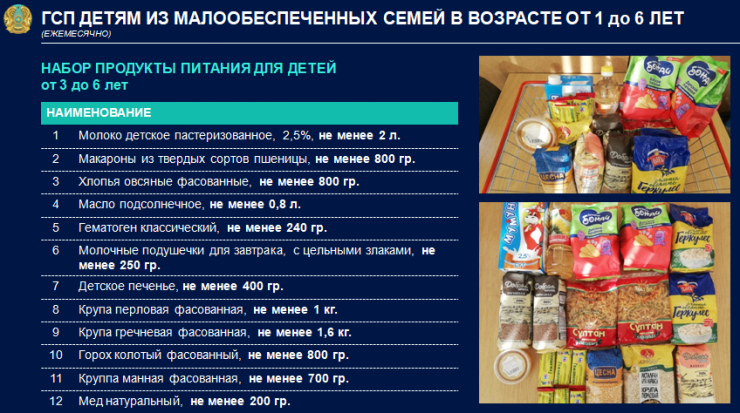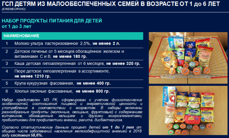 С 2020 года дети дошкольного возраста из малообеспеченных семей будут получать наборы продуктов питания и гигиенических средств, передает корреспондент Tengrinews.kz.