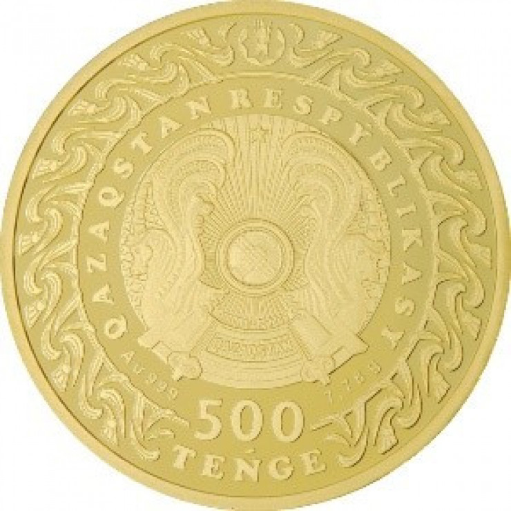 1) из золота 999/1000 пробы качеством proof, номиналом 500 тенге, массой 7,78 грамма, диаметром 25 миллиметров. Тираж - 1 000 штук.