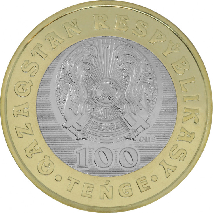 5) из сплава нибрасс/нейзильбер качеством brilliant uncirculated, номиналом 100 тенге, массой 6,45 грамма, диаметром 24,5 миллиметра, по 25 000 штук каждого вида, общим тиражом 175 000 штук.