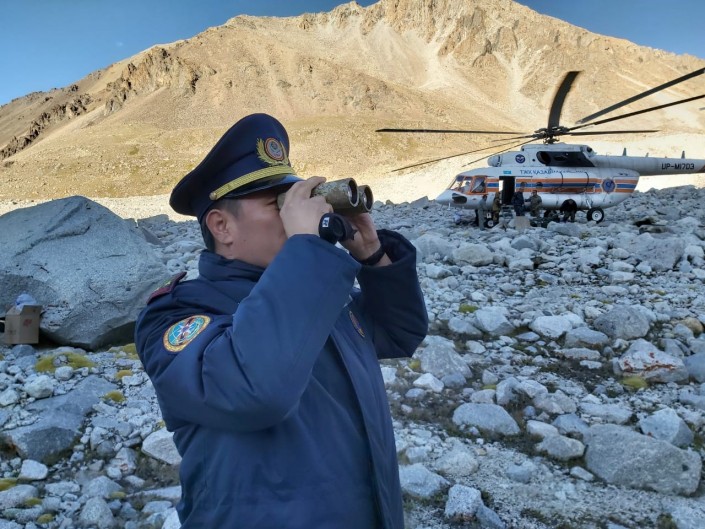 На вертолете МИ-171 на высоту была заброшена рабочая бригада из числа сотрудников ДЧС и Жетысу-Алатауского эксплуатационного управления "Казселезащиты". Им предоставили снаряжение, оборудование, строительные инструменты и материалы. Они опорожнили прорывоопасное моренное озера до безопасного уровня.