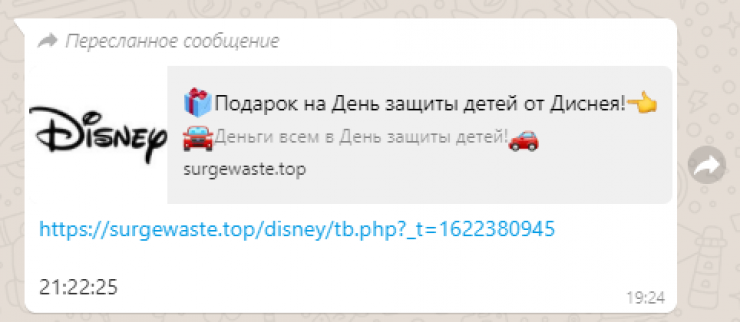 В WhatsApp распространяется рассылка о денежных призах за участие в опросе. Подарки казахстанцам якобы дарит компания Disney к Международному дню защиты детей, передает Tengrinews.kz со ссылкой на Stopfake.kz.