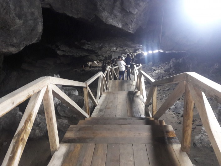 Үңгірдің кіреберісі тар, бір адам сиятындай жер ғана. Жалпы үңгірдің биіктігі 3 метрден 9 метрге дейін жетеді, ал тереңдігі 100 метрден асады. Үңгір кеңейе келе ені 12 метр және биіктігі 5 метрдей үлкен "бөлмеге" ұласады. Оның теріскей жағында күмбез тәрізді биік төбесі бар бөлігінің арғы қуысында көл бар.