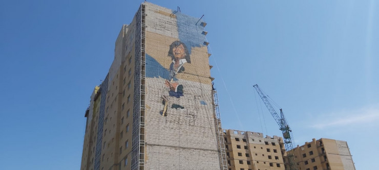 В Нур-Султане рисуют мурал с изображением известного певца и композитора Батырхана Шукенова, передает корреспондент Tengrinews.kz.