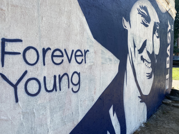 Очевидцы заметили изменения днем 2 июля. Теперь на мурале изображен Первый Президент в молодости.