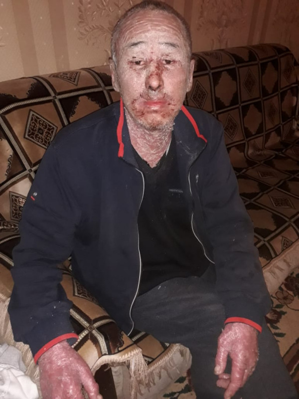 После обострения болезни пациент обращался во множество медицинских учреждений, но лечение не принесло положительного результата. Аскарбеку сейчас сложно двигаться и ходить: чешуйки пересохшей кожи трутся друг о друга и опадают, причиняя мужчине боль.