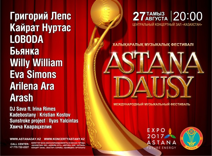 Впервые в Астане состоится церемония вручения статуэток исполнителям современной музыки. В первом ежегодном международном фестивале "Астана дауысы" примут участие самые топовые артисты года из 15 стран Европы и Азии. На одной сцене выступят артисты, задающие тренд в музыкальной индустрии, - Григорий Лепс, Светлана Лобода, Бьянка, Вилли Уильямс, Ильяс Ялчинташ, Arash, DJ Sava, Ева Симонс и другие. Казахстан на фестивале представит Кайрат Нуртас.