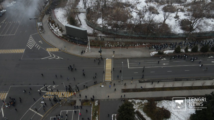 Ехало несколько автомобилей, черный "Гелендваген", черный Lexus. Они ездили без номеров и прям по беспределу - по встречке, по всей развязке ехали, там же большая развязка. Машины останавливались посередине дороги, оттуда выходили люди, кричали. Хлопки приближались ближе, ближе, и потом я увидела, что сверху со стороны Аль-Фараби по Сейфуллина и по Тимирязева вниз потоки людей идут к одной точке - ГАИ на Маркова-Тимирязева. Из моего окна все это прекрасно видно", - рассказала алматинка.