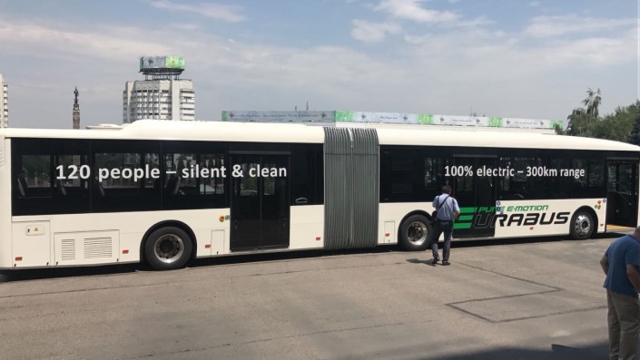 На дорогах Алматы запускают первый электроавтобус Электроавтобус III поколения немецкого производителя Eurabus, который привезли в Алматы на выходных