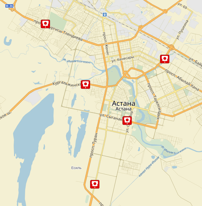 В Астане установлено 83 стационарных скоростемера, фиксирующих скоростной режим, и 12 систем контроля дорожного движения "Интегра КДД", фиксирующих пересечение стоп-линии и проезд на запрещающий сигнал светофора.