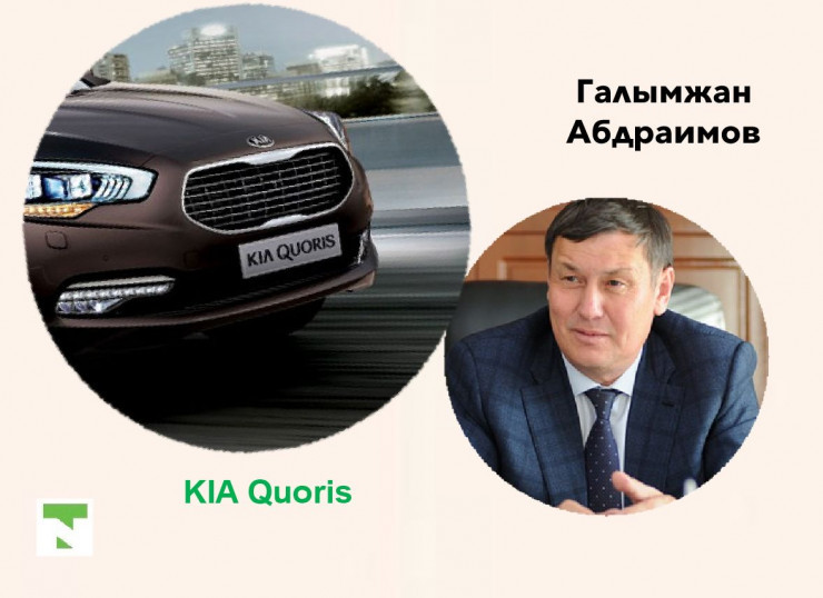 За акимом Талдыкоргана Галымжаном Абдраимовым закреплена автомашина KIA Quoris серого цвета 2018 года выпуска.