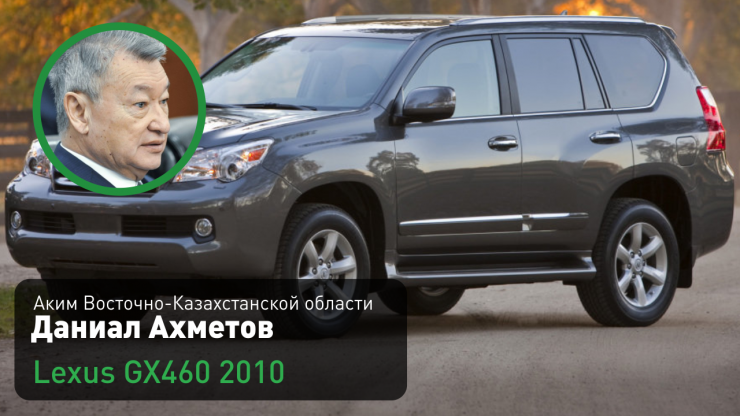 Аким Восточно-Казахстанской области Даниал Ахметов (на этой должности с 11 ноября 2014 года) ездит на черном Lexus GX 460 2010 года выпуска.