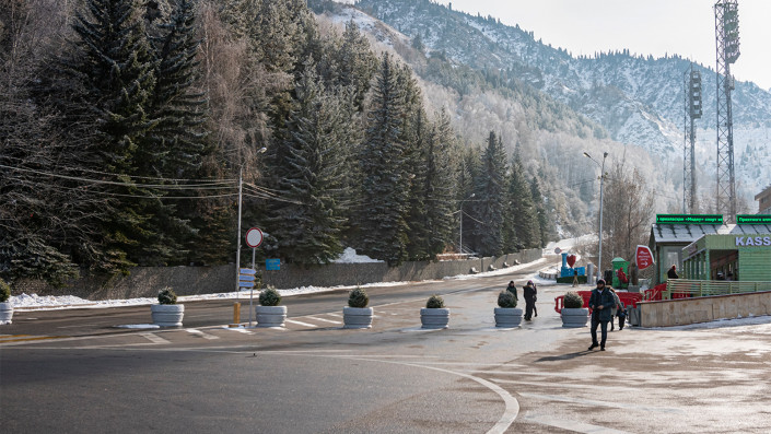 Есть вариант оставить автомобиль на парковке возле станции канатной дороги Медеу - Шымбулак. Это платная зона, стоимость - 500 тенге на целый день во все дни недели. Но здесь нужно учитывать, что расстояние от парковки до спорткомплекса составляет порядка 800 метров с ощутимым подъeмом и частичным отсутствием тротуаров. Этот путь нужно преодолеть пешком либо дождаться автобуса на расположенной неподалеку остановке.