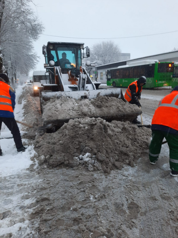Отмечается, что с 6 утра было организовано 17 колонн по сгребанию снега в сопровождении патрульных машин полиции. Силами 32 снегопогрузчиков и 70 самосвалов производится вывоз снега.
