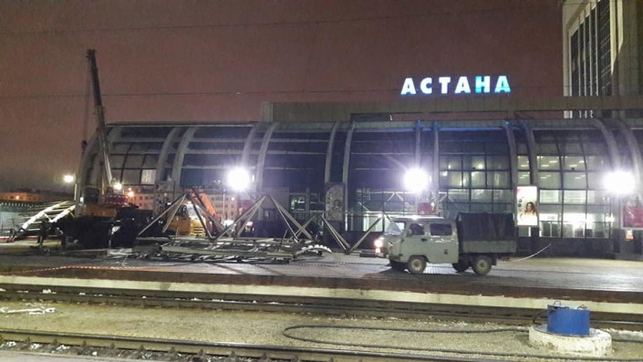 Как сообщает КТЖ Поддержка в комментариях к посту, в настоящее время ведется полный демонтаж навеса, расположенного на железнодорожном вокзале Астана.
