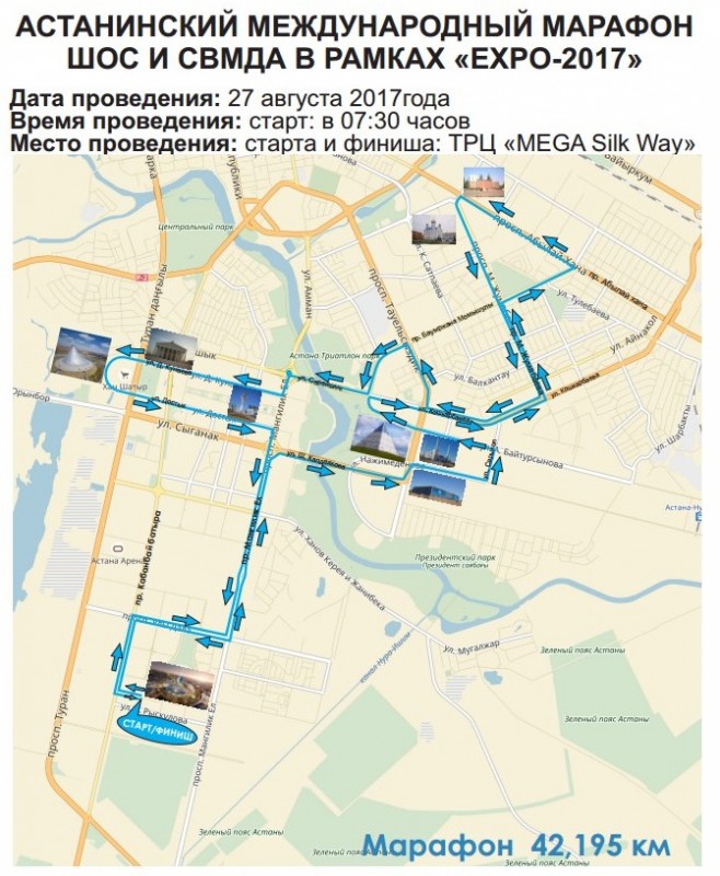 В связи с проведением Астанинского международного марафона ШОС и СВМДА в рамках EXPO-2017 будет ограничено движение по некоторым улицам.