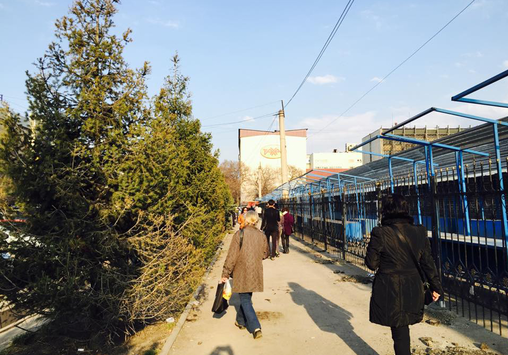 Сейчас на Зеленом базаре со стороны улицы Макатаева установлено железное ограждение. За ним уже можно увидеть новые знаки правил дорожного движения, в частности, знак "Парковка для людей с ограниченными возможностями". Отметим, что овощные ряды открыты только частично, а контейнеры с продуктами питания работают в обычном режиме.