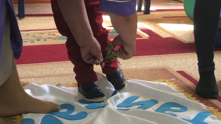 После курса лечения и реабилитации, к радости родителей и лечащих врачей, Муслим сделал свои первые самостоятельные шаги. В реабилитационном центре по казахским обычаям провели обряд "тусау кесу".