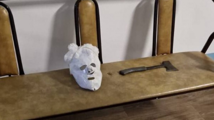 Позже в социальных сетях появилась фотография маски и топора, которые, предположительно, использовал нападавший.