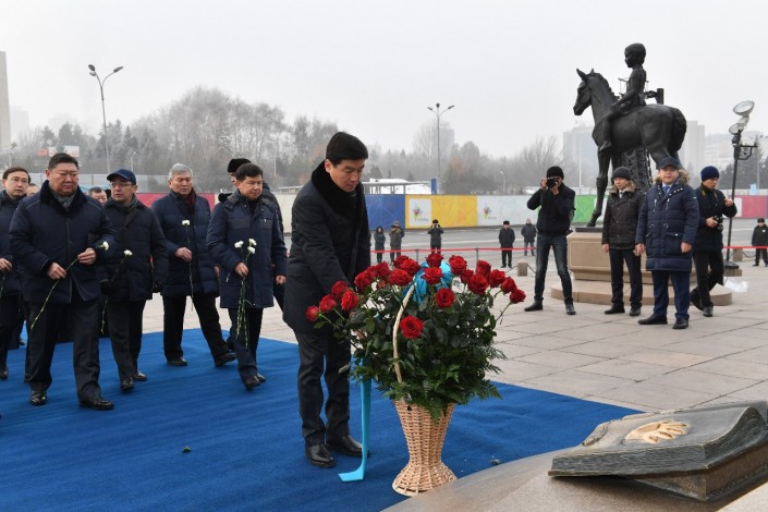 На площади Республики в Алматы состоялось возложение цветов к монументу Независимости, передает корреспондент Tengrinews.kz.
