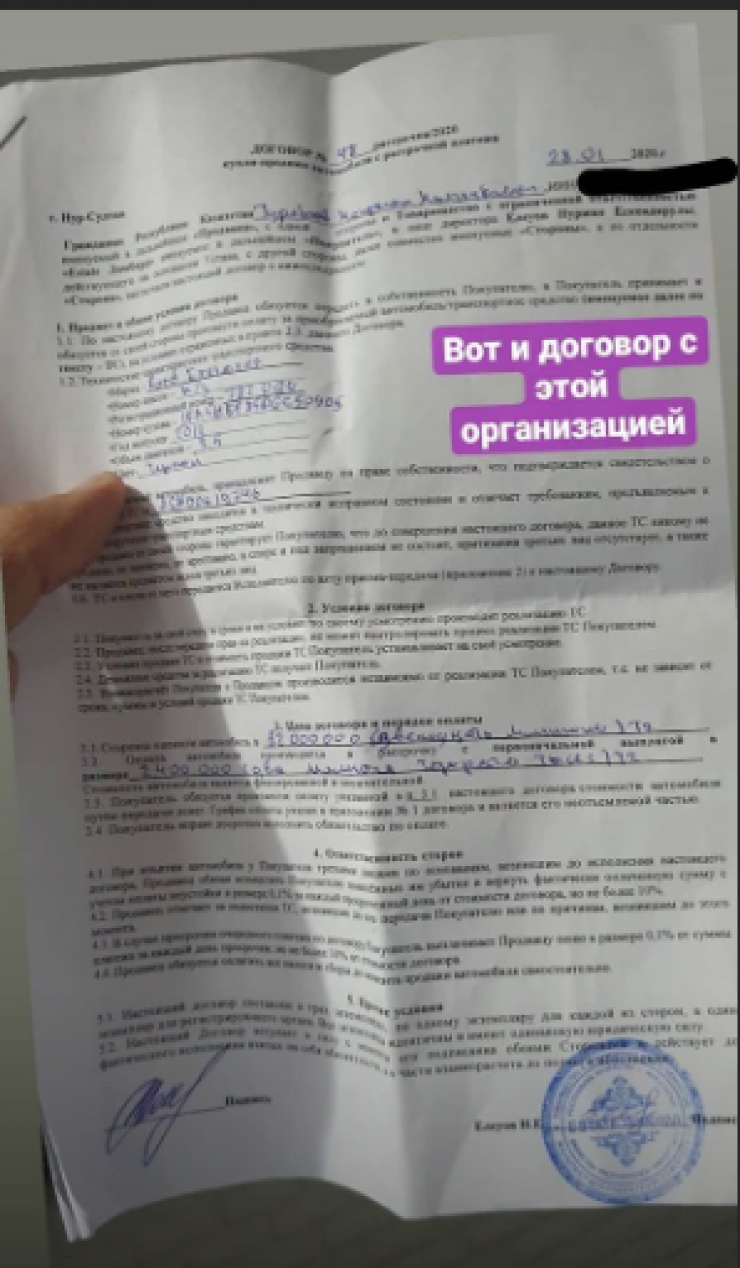 Вайнер обратился с заявлением в УВД района Есиль в Нур-Султане. В качестве доказательства Туребаев опубликовал договор с компанией "Estate Ломбард".