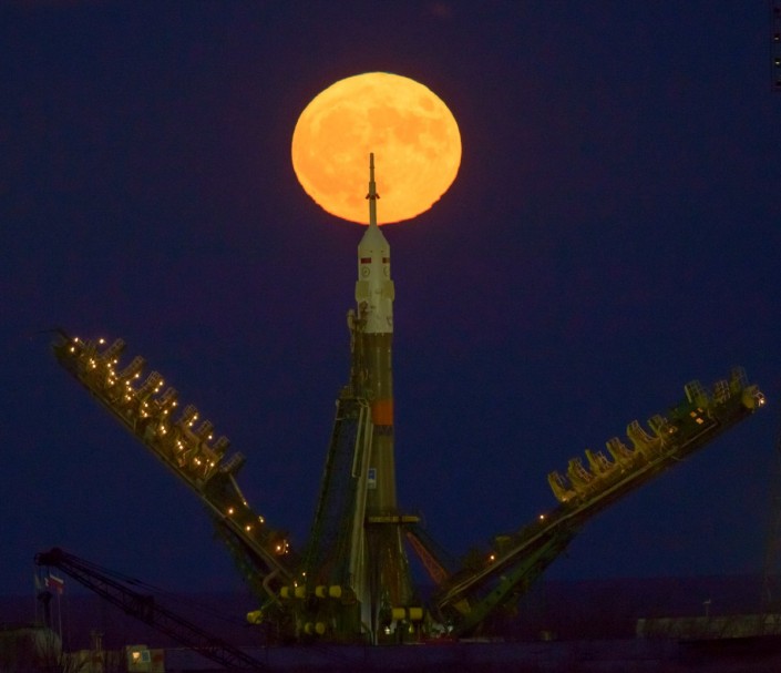 NASA опубликовало снимок захватывающего суперлуния с космодрома "Байконур"