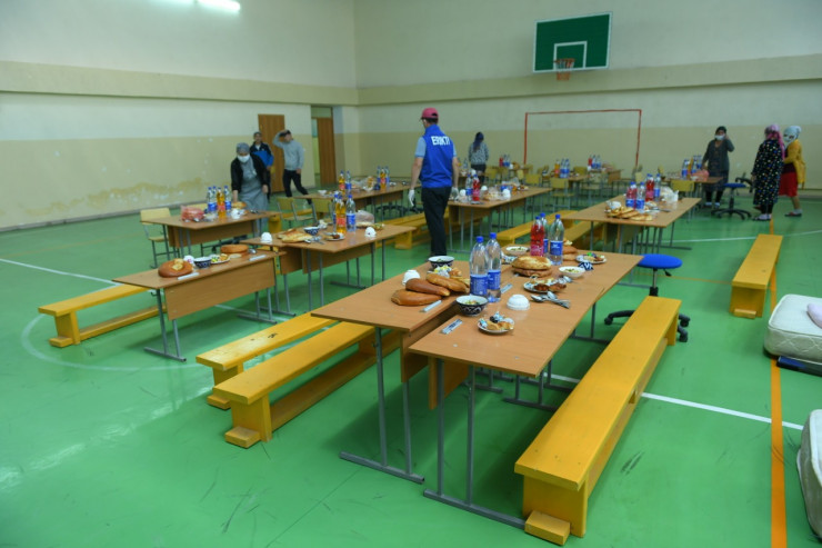 Другие же были поселены в школы, детсады, мечети и общежитие колледжа в поселке Атакент. Таких эвакуационных пунктов здесь 24. В них временно разместили около четырех тысяч человек. Один из таких пунктов развернули в общеобразовательной школе № 9.