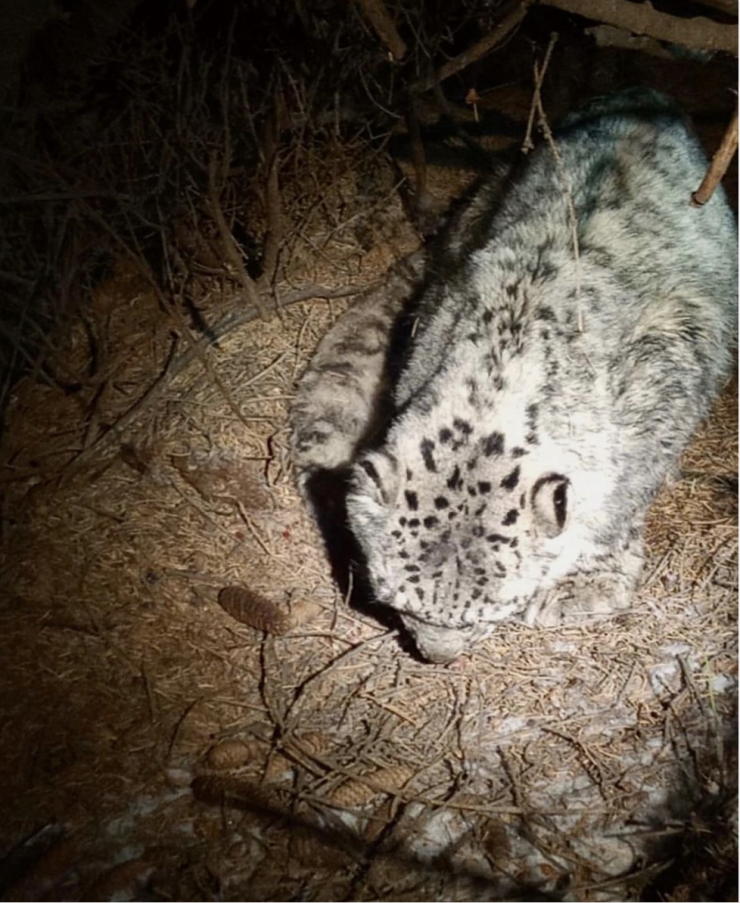 На место выехали сотрудники Иле-Алатауского национального парка, Института зоологии и ветеринарные врачи зоопарка. Поиски увенчались успехом, барса удалось обнаружить в 23:50. Состояние животного было определенно как крайне тяжелое. Помочь на месте было невозможно, необходима была точная диагностика. Оперативно были взяты материалы для проведения исследований: смывы для ПЦР-анализов и кровь. Коллегиально было принято решение доставить животное в Алматинский зоопарк.