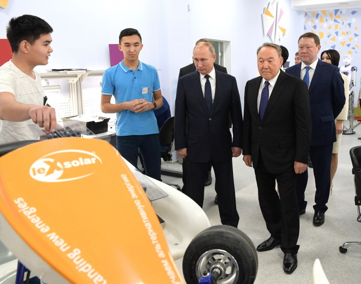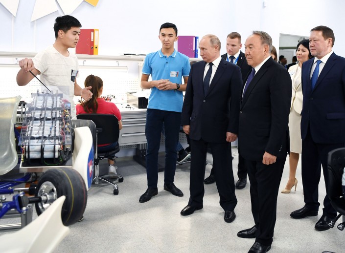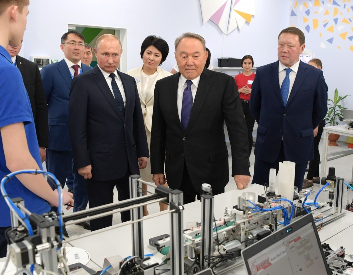 По окончании Форума приграничного сотрудничества президенты Казахстана и России осмотрели учебные кабинеты и лаборатории, где используются инновационные технологии в образовательном процессе.