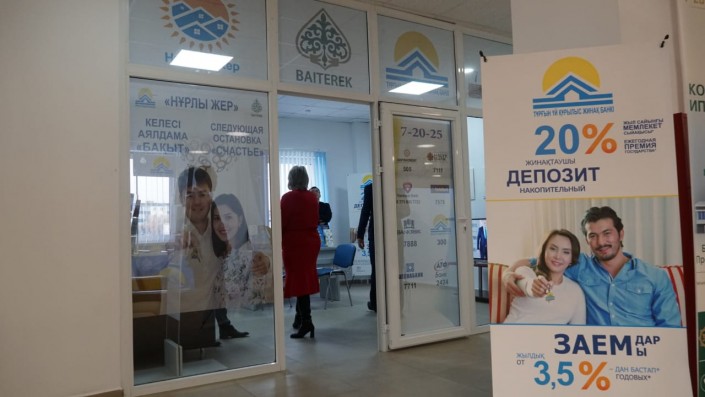"Вот такие молодые семьи примерно какие квартиры предпочитают?" - спросил Назарбаев у представителя стройкомпании, указывая на фото молодой семьи на билборде с рекламой жилищной стройкомпании.