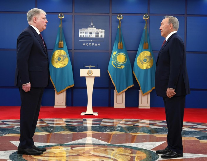 "Поздравляю с началом новой дипломатической миссии в Казахстане. Ваша дипломатическая работа начинается в сложный и ответственный период. Казахстана в течение четверти века стал государством со сложившейся дипломатической системой, зрелым гражданским обществом и развитой экономикой. Основной целью всех наших начинаний является вхождение в число 30-ку самых развитых стран мира", - сказал Назарбаев во время торжественной церемонии.