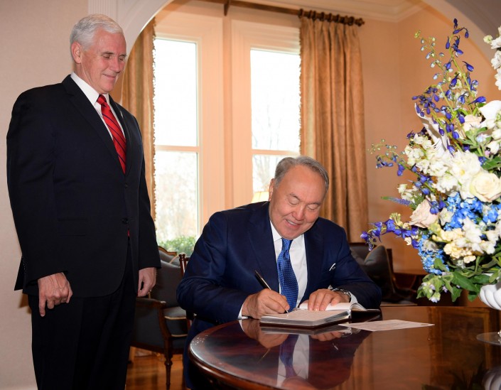 Президент Казахстана Нурсултан Назарбаев в Вашингтоне встретился с вице-президентом США Майклом Пенсом, передает корреспондент Tengrinews.kz со ссылкой на пресс-службу Акорды.