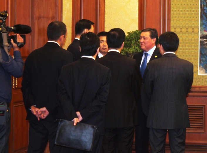 "Ни Хао", - сказал в своем приветственном слове Назарбаев на встрече c cекретарем парткома - председателем постоянного комитета Всекитайского собрания народных представителей провинции Цзянсу Лоу Чжицзюнем. На встрече присутствовали также заместитель управляющего делами парткома провинции Цзянсу, секретарь парткома города Ляньюньгана, руководитель канцелярии иностранных дел провинции Цзянсу и мэр города Ляньюньгана.