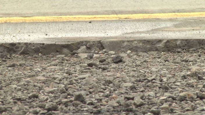 Чтобы отыскать причину растрескивания, привлекли передвижную лабораторию - георадар. Им просканировали дорогу. Оказалось, что на разрушенных крайних полосах модуль упругости снижен на 12 процентов, а на глубине до полутора метров прибор показал затемнения.