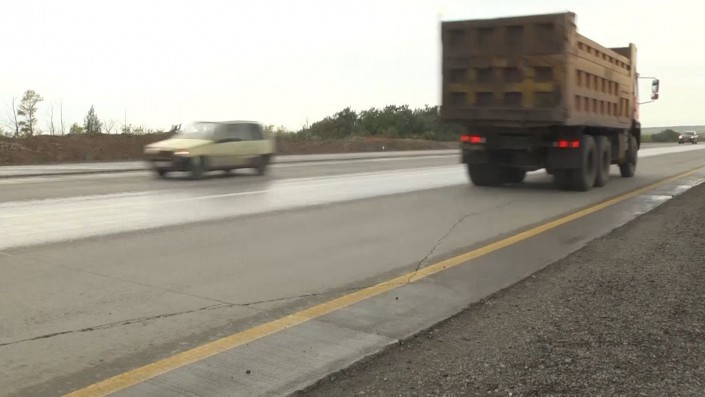 В Карагандинской области идет строительство шестиполосной магистрали между городами длиной 15 километров и 800 метров. Сдача автобана срывается из-за того, что бетонное полотно, залитое в прошлом году, уже в этом покрылось паутиной из множества трещин.