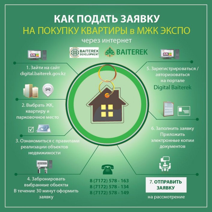 "В целях обеспечения прозрачности процесса прием заявок на приобретение жилья и машиномест будет осуществляться в онлайн-режиме через платформу Digital Baiterek. Хотим обратить особое внимание потенциальных покупателей на то, что АО "Байтерек девелопмент" не сотрудничает с риелторскими компаниями и не взимает плату за регистрацию и оформление заявок через портал", - подчеркнул Усербаев.
