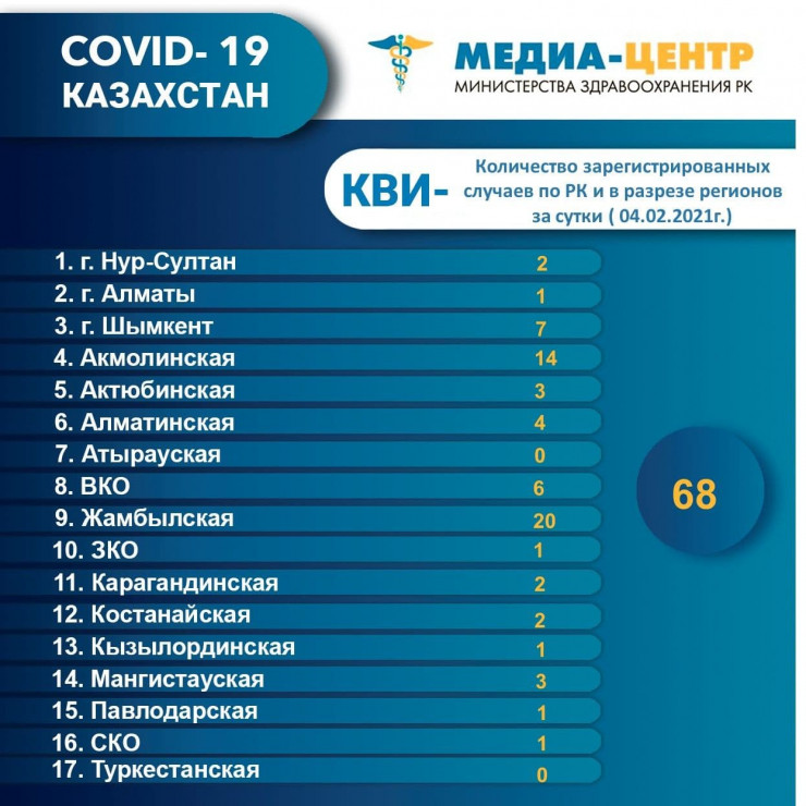 По данным Межведомственной комиссии, на 5 февраля в "красной" зоне по эпидемиологической ситуации находятся Акмолинская, Павлодарская и Северо-Казахстанская области. В "желтой" зоне - Нур-Султан, Атырауская, Восточно-Казахстанская, Западно-Казахстанская, Костанайская и Карагандинская области.