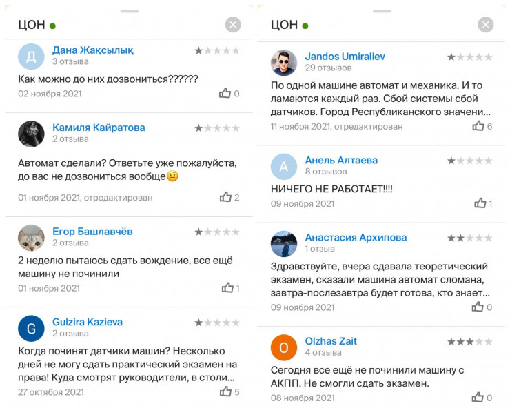 "Супруга уже долгое время не может попасть на сдачу практического экзамена из-за бесконечных проблем с автомашиной. Всего единожды ей это удалось (как раз после тайного посещения министра). Но теперь ее утро начинается не с кофе, а со звонков в спецЦОН узнать, отремонтировали ли автомашину", - написал астанчанин Канат Кульшманов.