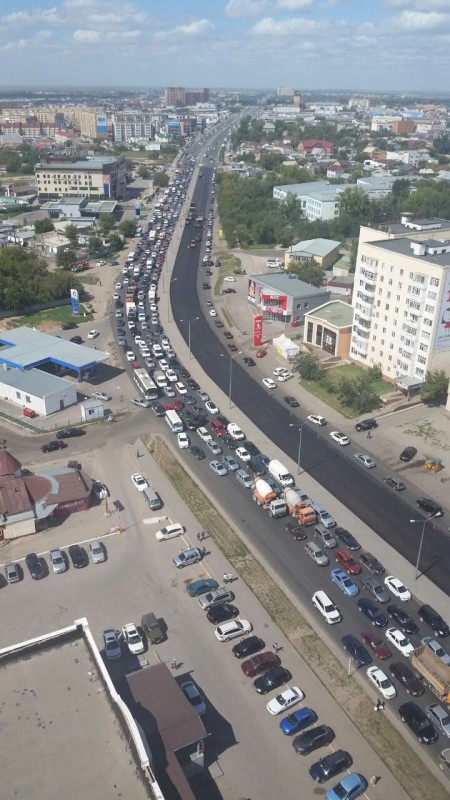 Недовольные ремонтом дороги водители испортили субботнее утро жителям Астаны Фото очевидца